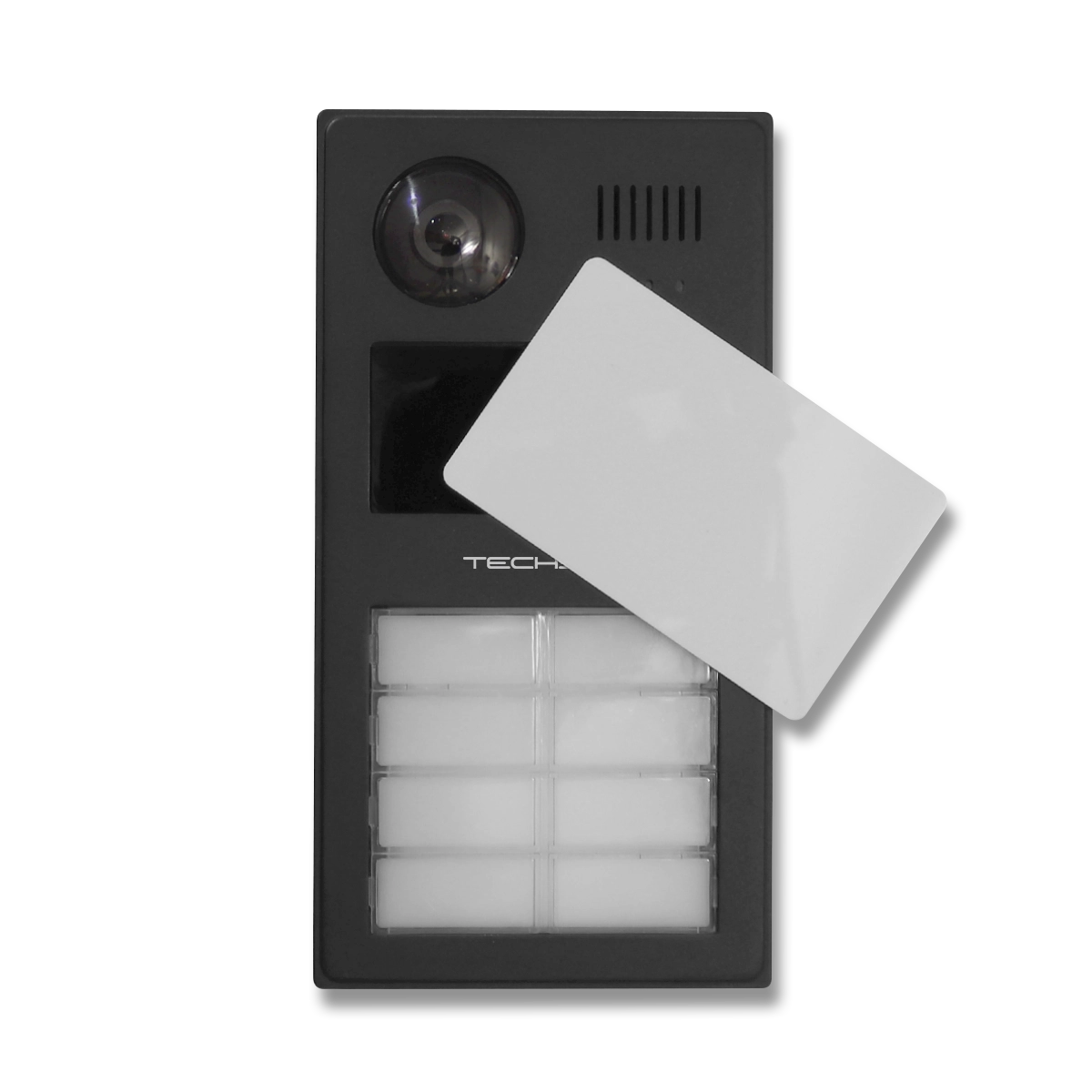 Techson kültéri IP video-kaputelefon, Android / IOS alkalmazással (Superlive Plus), többlakásos, 2MP, IR/Fehér LED megvilágítás, WDR (80dB),beépített Mifare kártyaolvasó (13,56MHz), Wiegand ki/bemenet, WiFi (2,4 GHz), Arcdetektálás